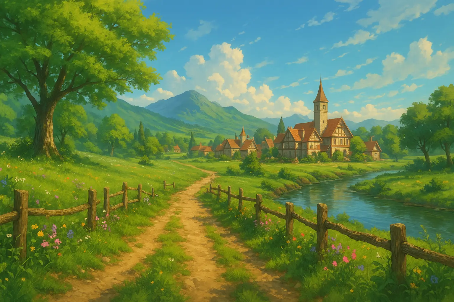 美術はアトリエPlatz、美術監督は松本浩樹さんが担当。森や川、古びた村など、自然と人が共に生きる風景を細部まで丁寧に描いています。